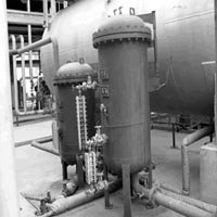 聚结分离器内部装有两种功能不同的滤芯——聚结滤芯和分离滤芯。欲脱水的介质由过滤分离器进口进入壳体,由聚结滤芯托盘分配与每一个聚结滤芯,液体从聚结滤芯内部流向外部,经过过滤、破乳、聚结、沉降四个过程,将乳化的液体破乳,再将破乳后的小水珠聚结成大水珠,沉降到壳体底部。部分未来得及沉降的小水珠随液体流向分离滤芯,分离滤芯由特种材料制成,具有良好的憎水性能,小水珠被完全有效地拦截在滤芯外面,再次聚结成大水珠沉降,从而确保有效地脱除水份。沉降到壳体底部的水份由液位计显示出来,可定期不定期地将水份及污物通过排水阀排出。分离掉水份的介质由分离滤芯托盘汇集后,从分离器出口流出。